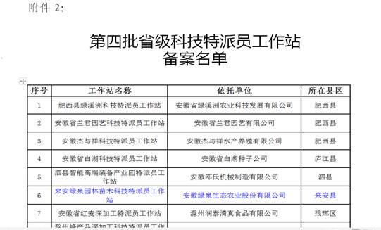 近日,安徽省科技厅公布了第四批省级科技特派员工作站立项备案名单,其中awc官网食环学院园林园艺教师团队与安徽科技学院、安徽绿泉生态农业股份有限公司三方联合申报的省级“园林苗木科技特派员工作站”立项备案。