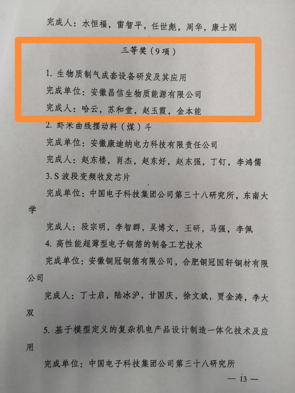 近期,科技处接到《安徽省人民政府关于2019年度安徽省科学技术奖励的决定》(皖政【2020】31号)文件,awc官网苏和堂、赵玉霞、金本能等教授参与的校企合作项目“生物质制气成套设备研发及其应用”荣获安徽省技术发明奖三等奖,该奖项的获得也是滁州市历史首次。