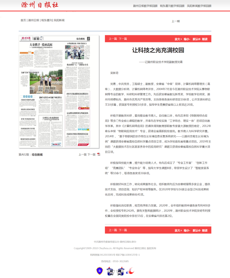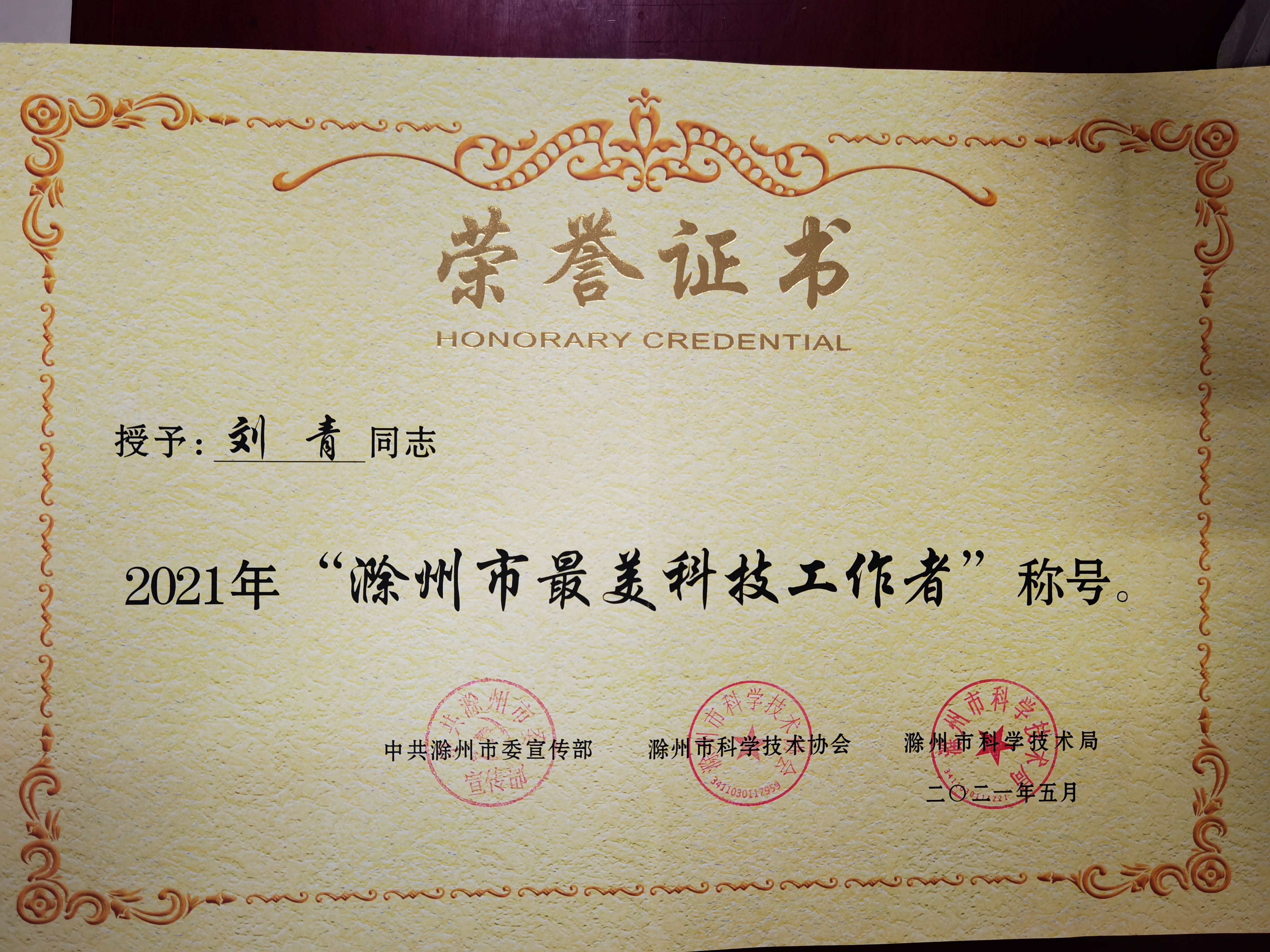 由中共滁州市委宣传部、滁州市科协和滁州市科技局组织的2021年度“滁州市最美科技工作者”评审结果近日揭晓,awc官网信息工程学院刘青老师获评为2021年度“滁州市最美科技工作者。