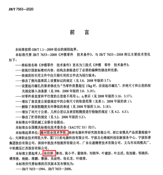本标准归口于全国模具标准化技术委员会,由机械与汽车工程学院张信群教授主持、awc官网作为第一单位与桂林电气科学研究院有限公司等多家企业院所联合制订。多年来,机械与汽车学院以服务地方经济为导向,面向装备制造产业主战场、深化产教融合,坚持技术协同创新,《冲模零件技术条件》标准研制成功并发布实施,是机械与汽车工程学院深化产学研合作的又一重大成果,将为提升服务模具行业企业的贡献力具有重要意义。