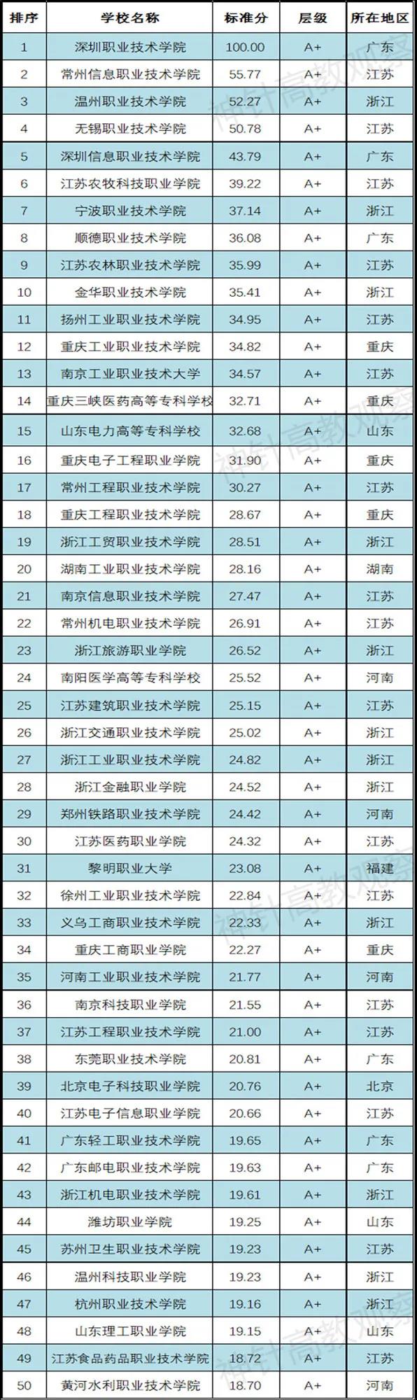 2021高职院校科研与社会服务竞争力评价结果(前20%高校)