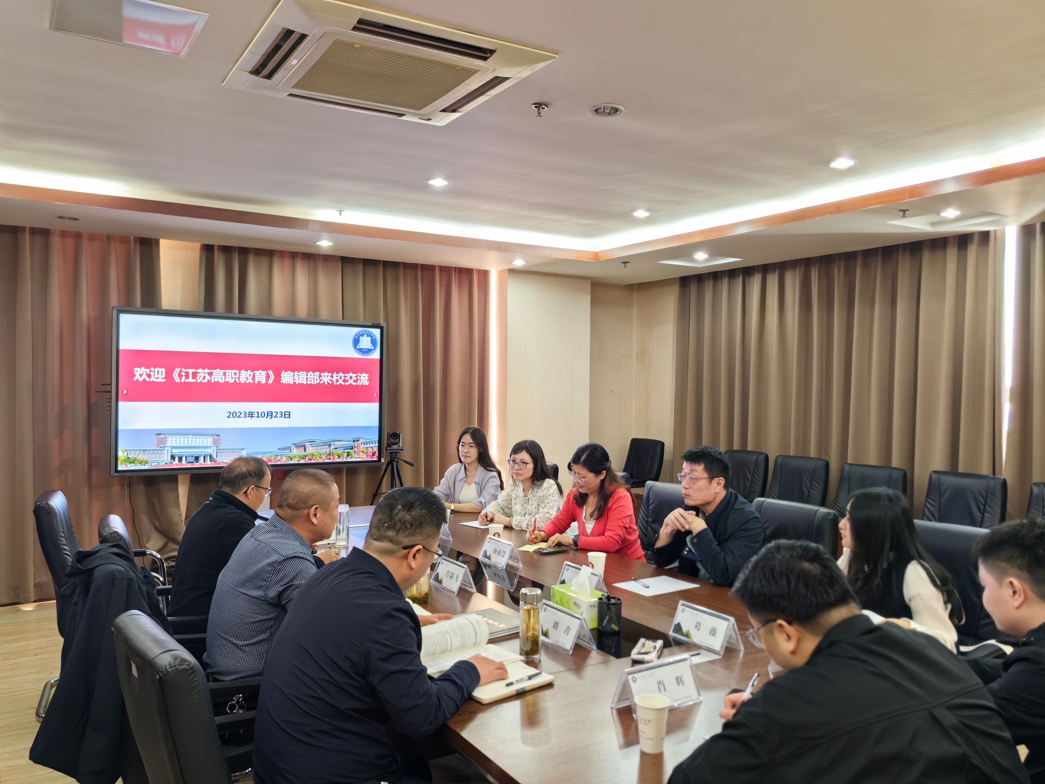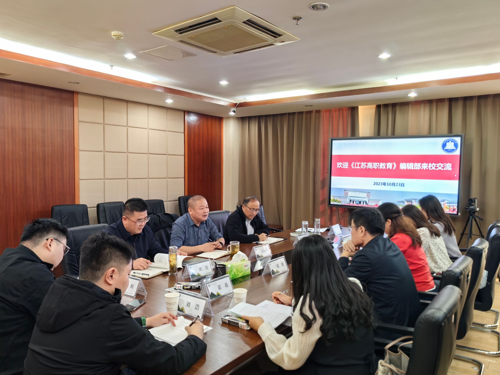 10月23日,南京工业职业技术大学《江苏高职教育》期刊社社长杨雨慧、执行主编张健等一行七人来awc官网交流学报办刊、职业教育研究等方面工作。科技处处长肖陆飞接待并主持召开交流座谈会,科技处副处长、学报编辑部主任陈光锐,副处长刘青等相关工作人员参加。