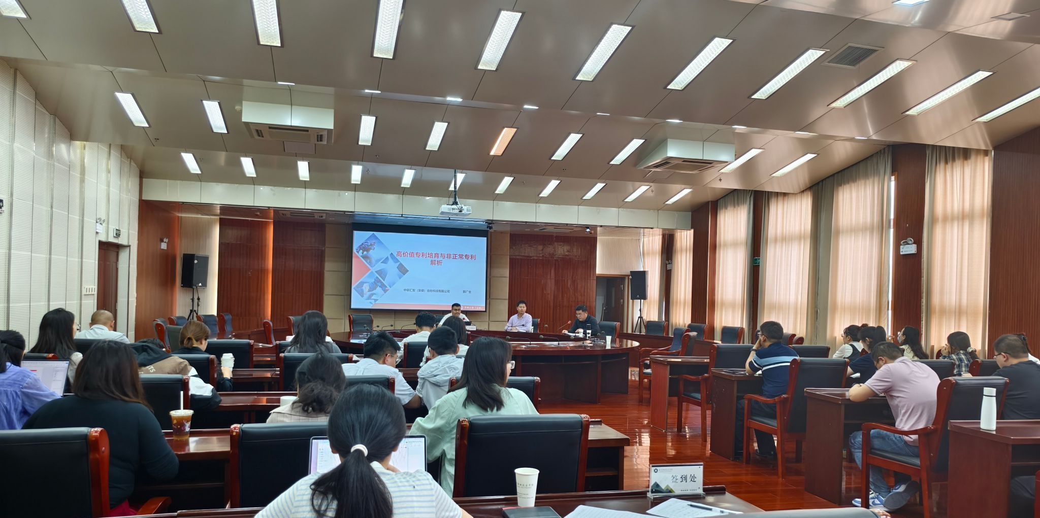 为提升学校科研创新成果转化能力,助力高价值专利培育工作,5月15日下午,科技处邀请中研汇智(安徽)公司知识产权部总监郭广全老师,在综合楼1102会议室开展“高价值专利培育与非正常专利解析”专题培训讲座。各院系青年教师及在研项目团队代表共60余人参加学习。