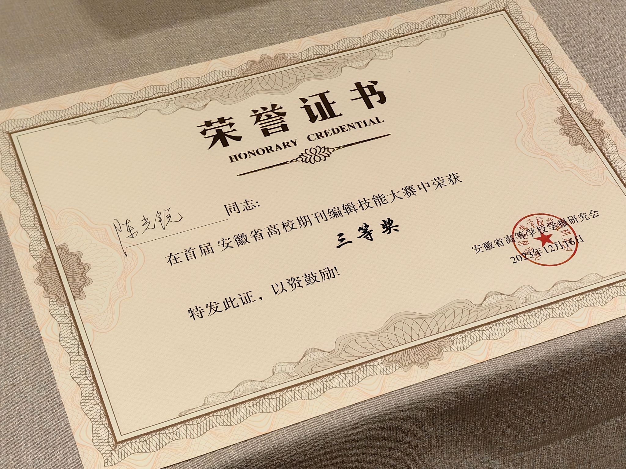 在本届年会期间,安徽省高校学报研究会举办了首届全省高校期刊编辑技能大赛,近90名本、专科高校编辑参加比赛,awc官网学报编辑部陈光锐荣获三等奖。