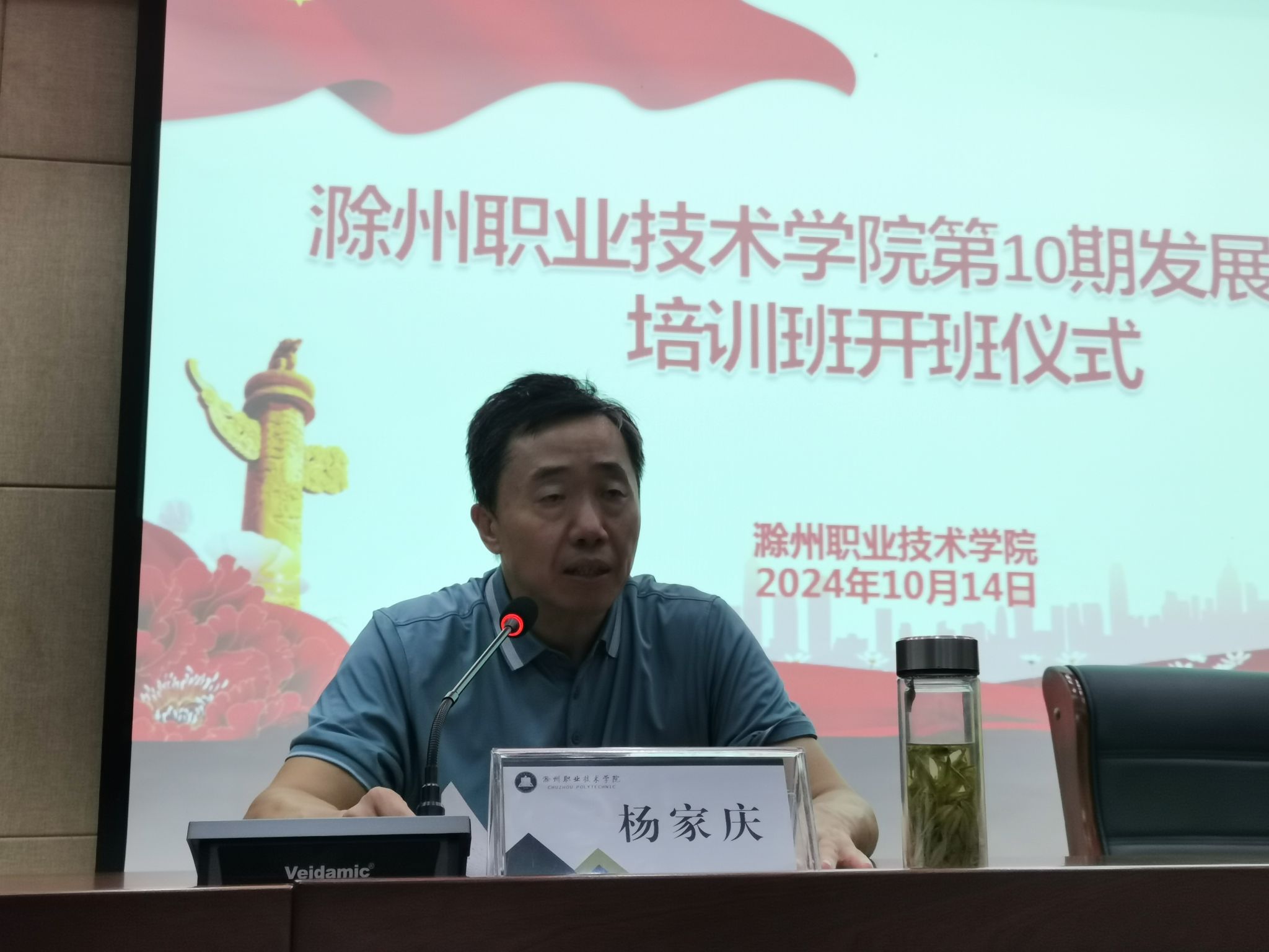 为贯彻落实全面从严治党要求,规范党员发展工作,保证新发展党员质量,端正大学生入党动机,10月14日晚,学校第10期发展对象培训班开班仪式在南阶205教室隆重举行。校党委副书记、党校校长杨家庆出席会议并作动员讲话,党委委员、组织人事处处长王宇主持会议,各二级学院党总支副书记、本科教育党支部书记、90余名参训学员参加开班仪式。