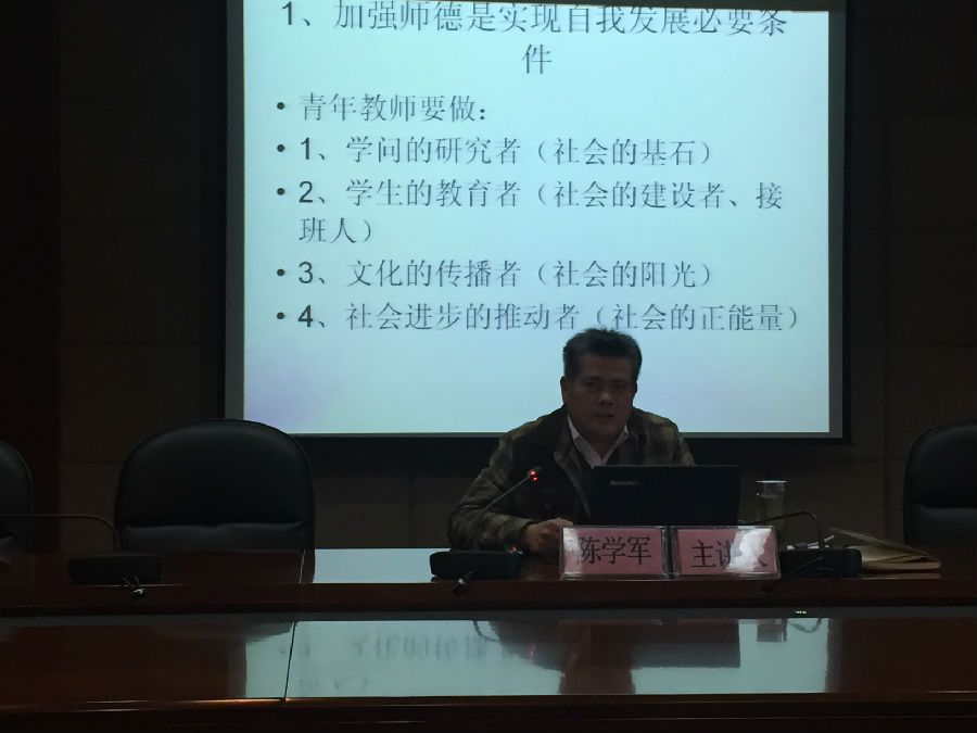 陈处长从目前青年教师的现状入手,以提出问题的方式,剖析了青年教师的个人发展、专业发展和师德建设上的常见问题。并从从宏观政策到个人发展,对于为什么要重视青年教师的发展,当前青年教师发展的现状如何,高校青年教师在专业发展上有哪些拆求以及师德面临着哪些冲击,如何加强师德师风建设,促进自我的全面发展这五个问题进行了分析,为青年教师指出了解决办法。