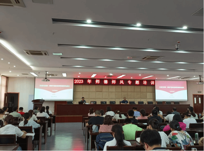 王教授从师德师风的内涵与价值入手,阐述师德师风在高校教师队伍建设中的重要性;通过讲述中西方的师德师风传统、当前师德师风存在的主要问题强调了当代青年教师应该如何结合实际规避师德师风问题。最后在加强师德师风建设的举措四个方面详细指出如何铸师魂,育师德,突出思想铸魂、加强宣传引导、强化师德教育、正确处理关系,用丰富并贴近实际的案例,引导广大教师坚定理想信念、厚植爱国情怀、涵养高尚师德,激励青年教师为培养具有创新精神和实践能力的新型人才,为中华民族的伟大复兴而奋斗。