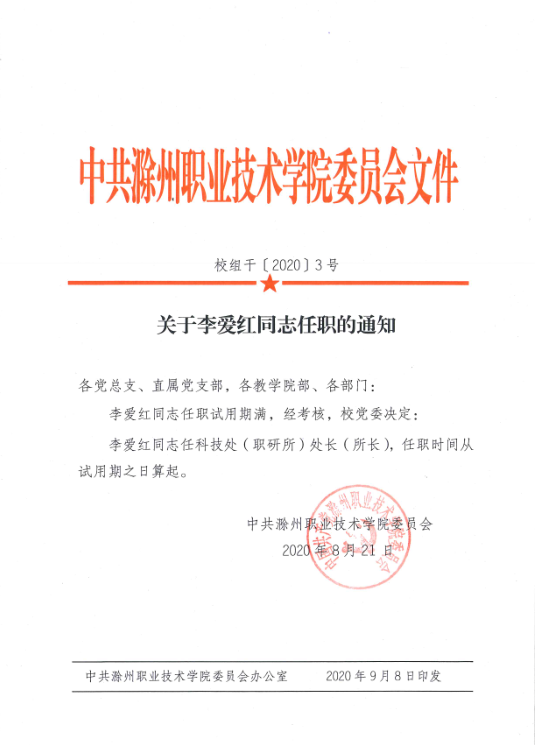 关于李爱红同志任职的通知
