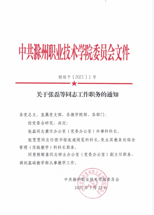 关于张磊等同志工作职务的通知