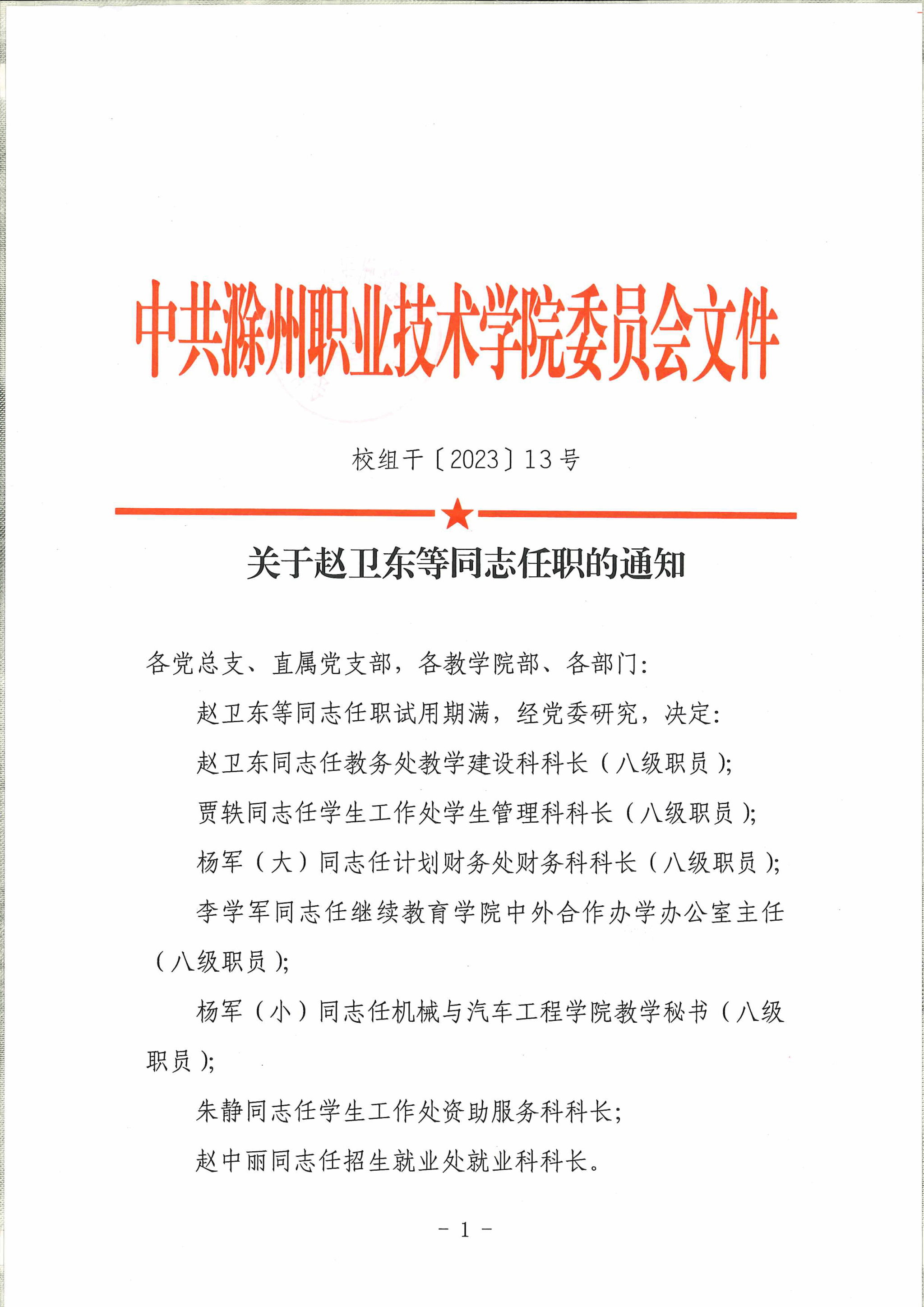 关于赵卫东等同志任职的通知