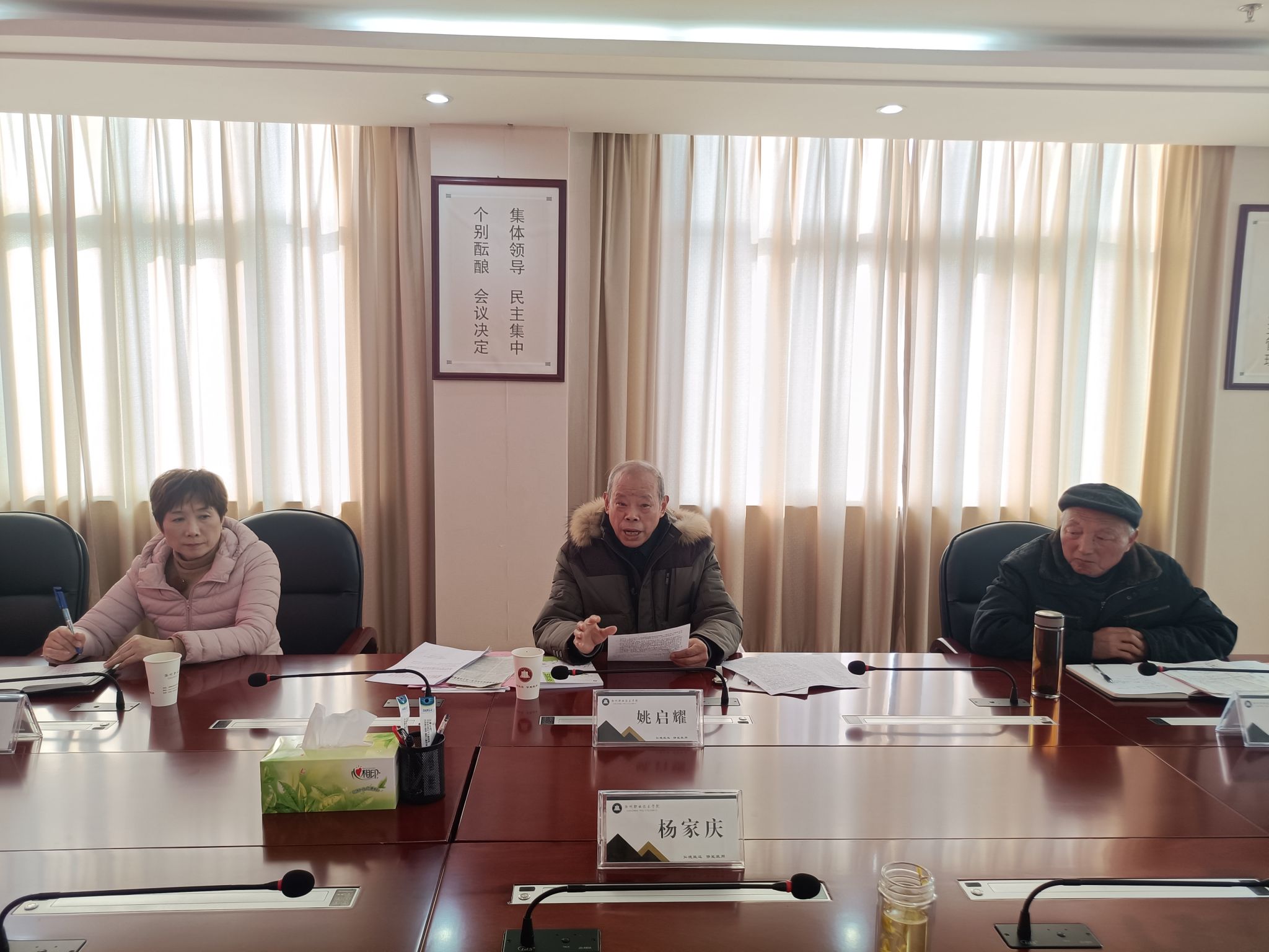会议主要由姚启耀同志代表校关工委向校党委作2023年度工作总结汇报。一年来在校党委的高度重视、有关部门积极配合和关工委自身努力下,在取得成绩基础上,奋跃而上,社会影响力进一步提升,得到了市关工委、市委组织部、老干部局以及省教育厅关工委的认可。他从校党委高度重视关心支持关工委工作、关工人主动作为、以及“学子读书 关工助力”的工作品牌建设,赋能校“三全育人”等方面,用具体事例进行了详细汇报,并对2024年关工委工作打算提请讨论。